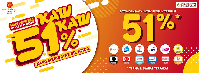 GD Lotto mengambil berat anda pada masa MCO ini. Sempena hari pekerja, GDLotto & GD Point berkerjasama untuk memberikan anda diskaun KAW KAW ! Kami akan membantu anda membayar bil Unifi, elektrik dan sebagainya.